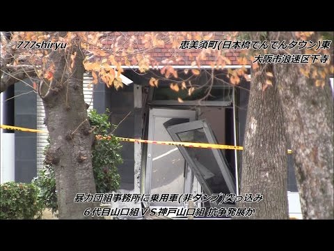 ☆タイトル:【事件現場2016】山口組分裂抗争乗用車で暴力団組事務所に突入し玄関大破☆大阪府警察の警戒態勢★恵美須町日本橋でんでんタウン近くGangster conflict Osaka