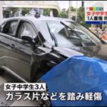 ニュース速報 瞬間映像 信号無視 中学生の列に車